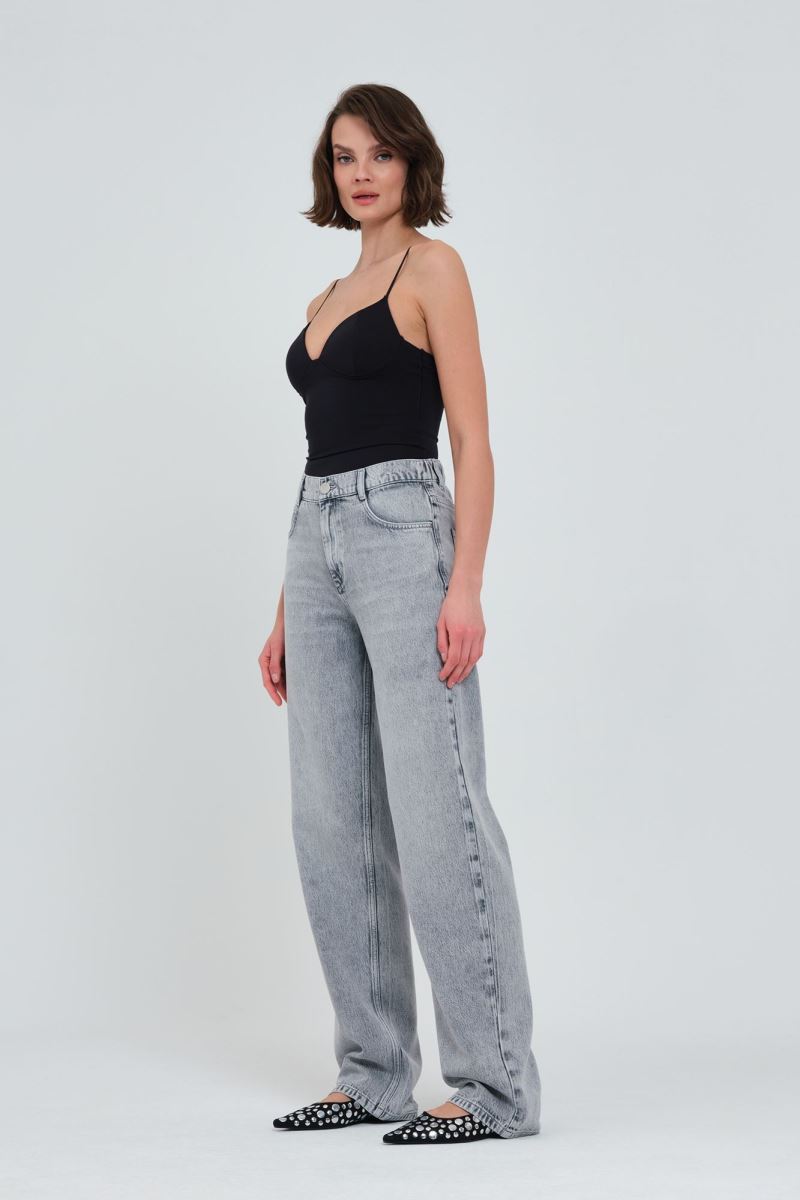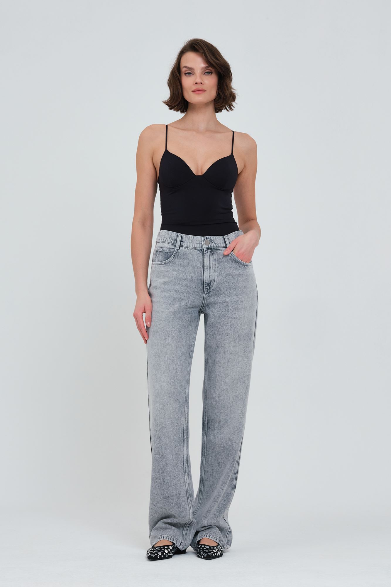 GREY USED LIGHT WIDE LEG KADIN JEAN PANTOLON