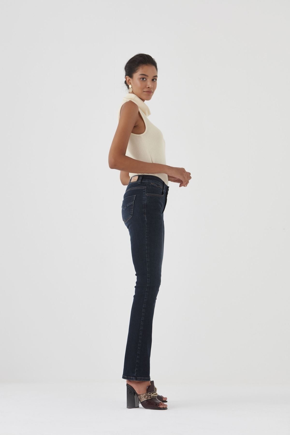 BLUE USED DARK STRAIGHT KADIN JEAN PANTOLON